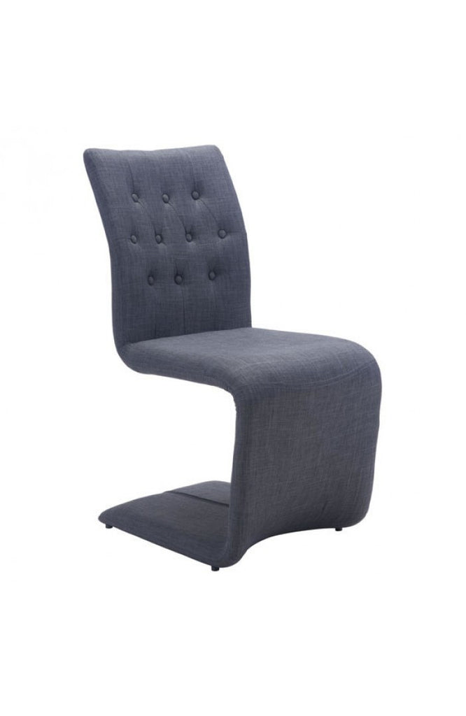 Updating a classic cantilever design, the Hyper dining chair is fully upholstered from top to bottom, in poly-linen fabric and features button accents to plush back. Color options include dark grey, beige and purple poly-linen fabric.