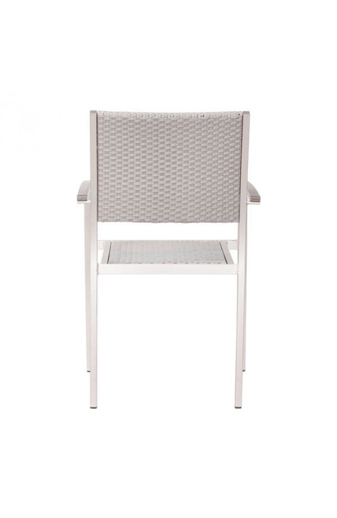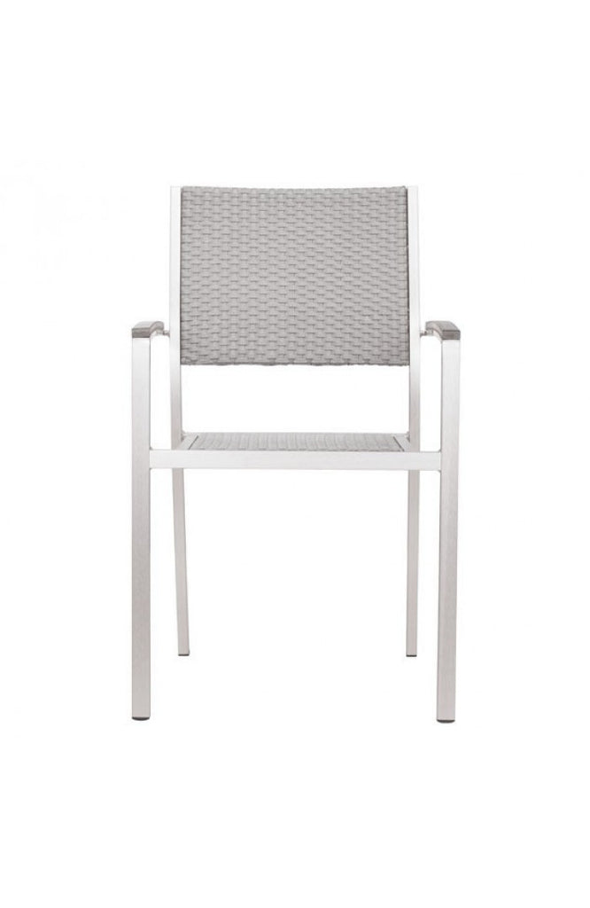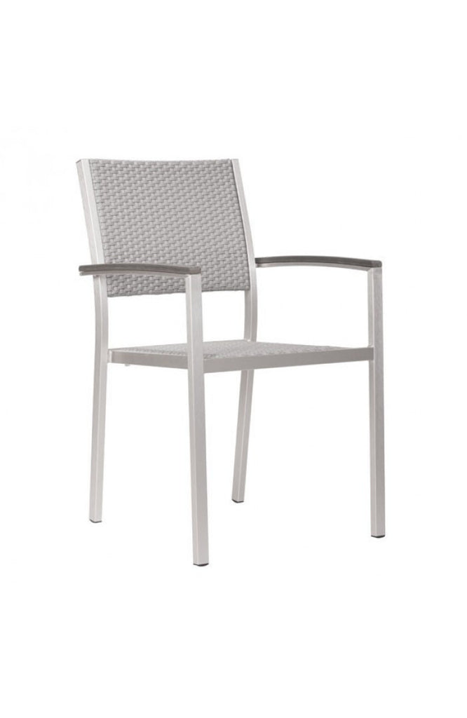 The sturdy arms and attractive mesh seat and back, the Metropolitan Armchair leaves an impression. The frame is aluminum with a textile seat and back. Stackable for easy storage.