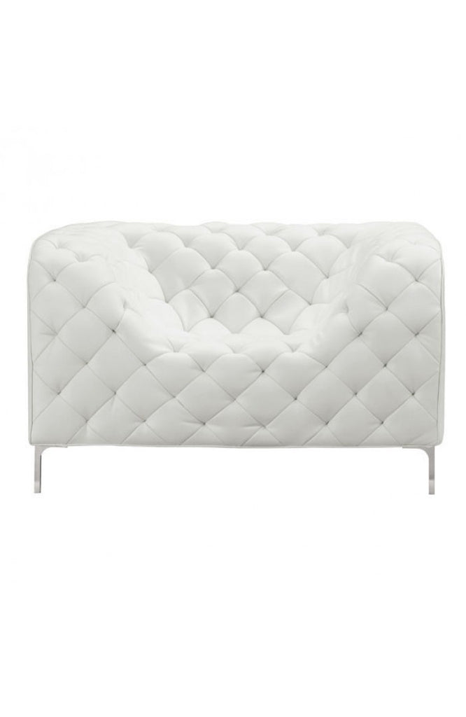 Like a grand piece of art, the Providence set dramatically changes any room. The set is wrapped and tufted in a leatherette with chrome legs.